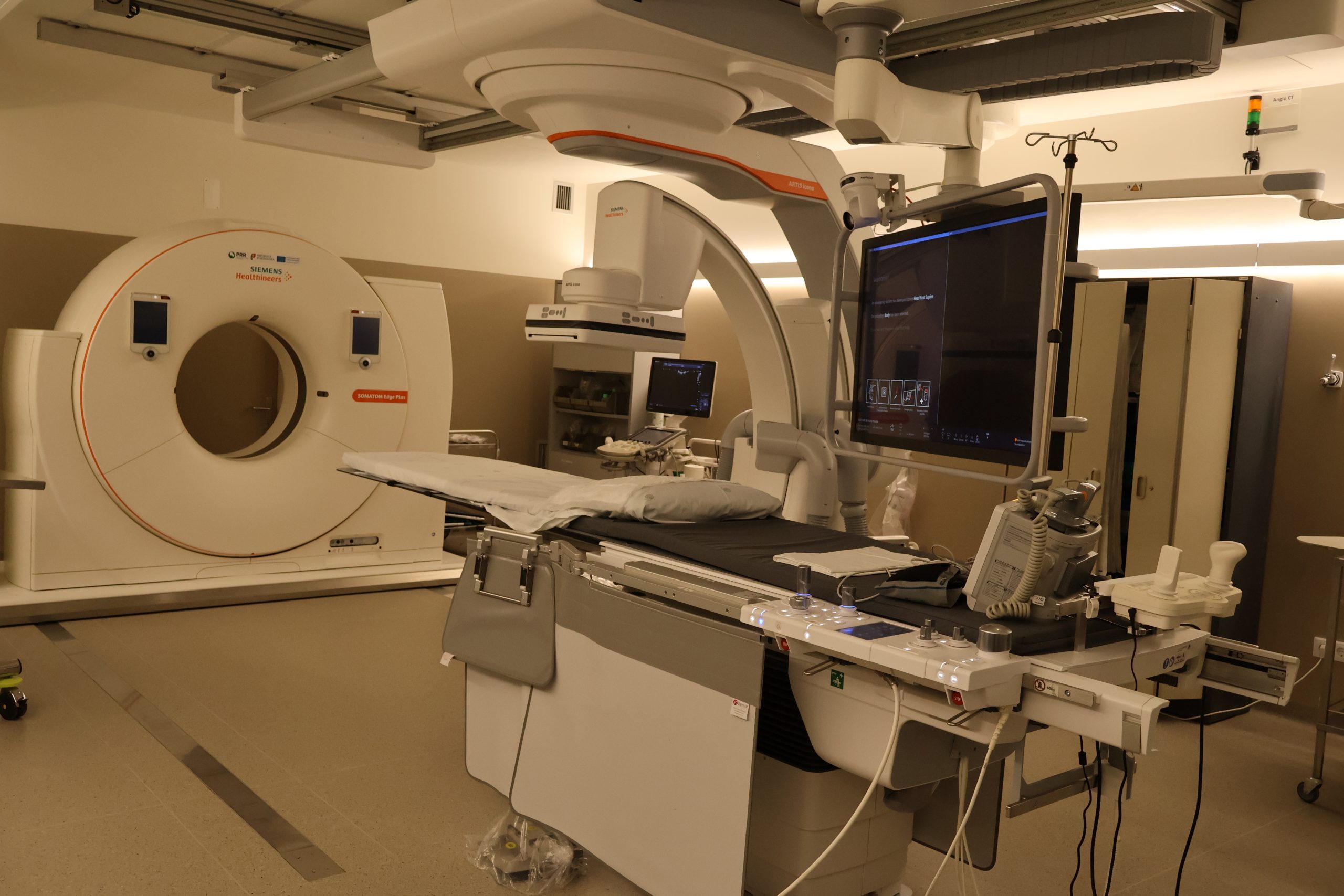 Entre os equipamentos instalados destaca-se o sistema híbrido Angio-TAC, que integra angiografia e tomografia computorizada numa única sala, que permite a realização de procedimentos minimamente invasivos com maior precisão, segurança e conforto para os doentes, nomeadamente nas áreas da oncologia e da radiologia de intervenção.