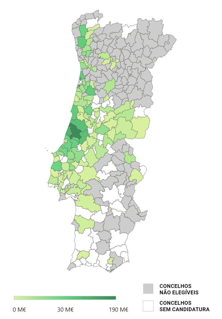 Veja aqui a distribuição de número de candidaturas por concelho.